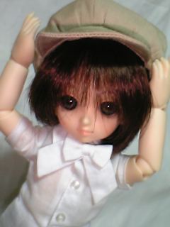 「んと、おぼうしかぶって・・・まえちゃんとなってますか?」